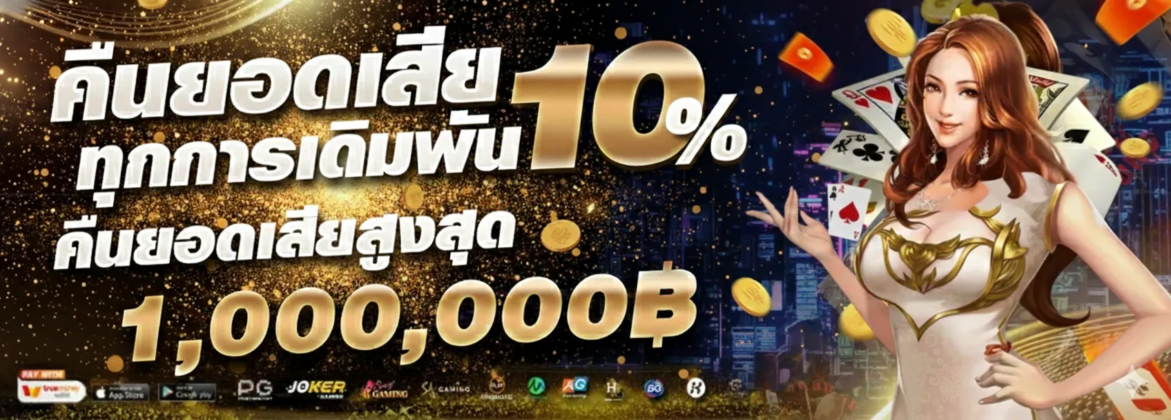 นอกจากนี้ เรายังมีโปรโมชั่นคืนยอดเสีย 10% ทุกสัปดาห์ สำหรับสมาชิกใหม่ในช่วง 1 เดือนแรก ไม่ว่าคุณจะเล่นเกมไหน หากมียอดเสียเราก็พร้อมคืนกำไรให้คุณ โดยไม่มีเงื่อนไขยอดเทิร์นโอเวอร์ที่ยุ่งยาก เพียงเล่นให้สนุกและรอรับเครดิตคืนทุกสัปดาห์